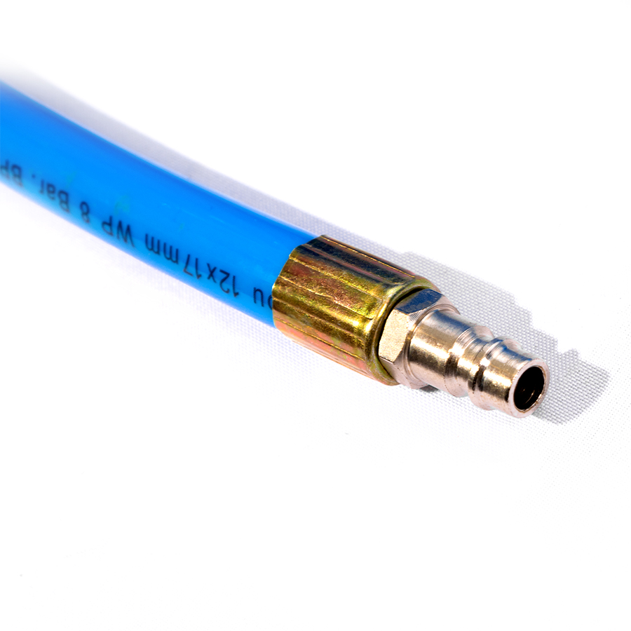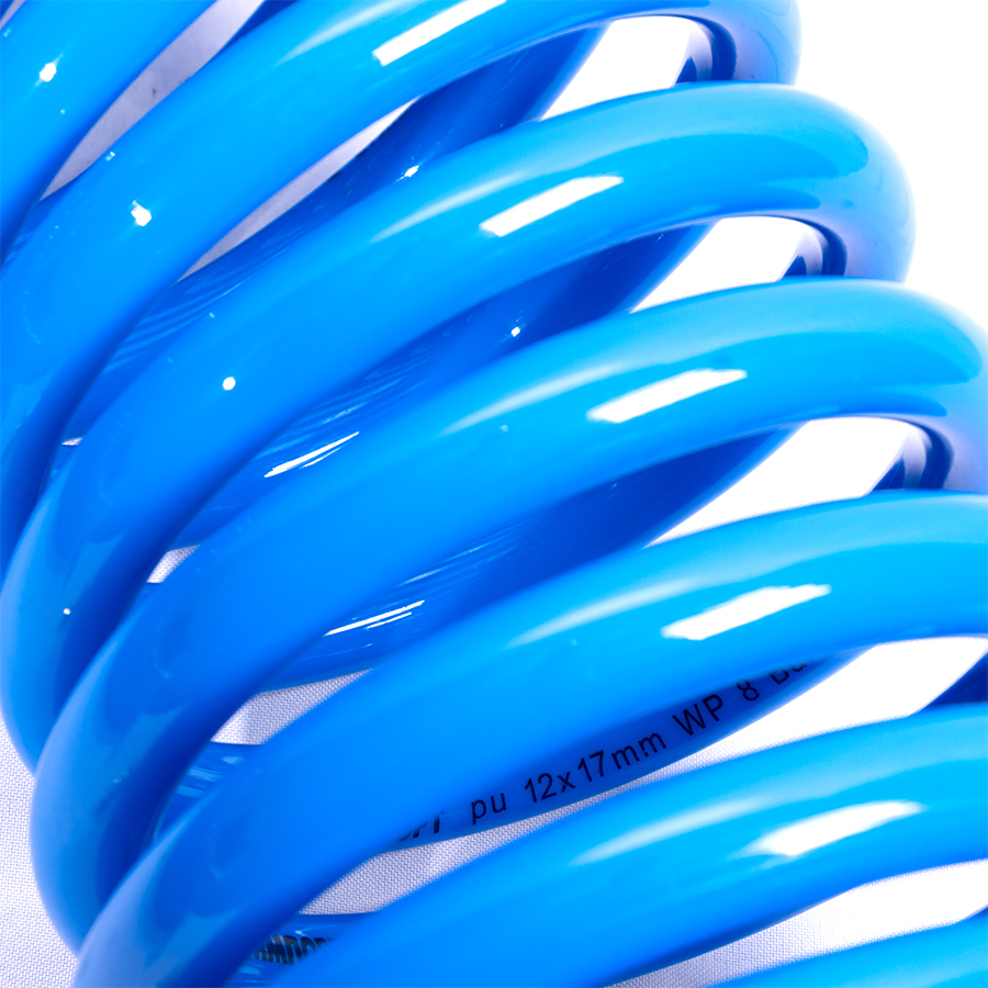 Шланг воздушный спиральный применяется для подачи воздуха от компрессора или линии сжатого воздуха к пневмоинструменту. За счет своей формы в виде спирали, шланг имеет достаточно компактный размер и не мешается под ногами.
